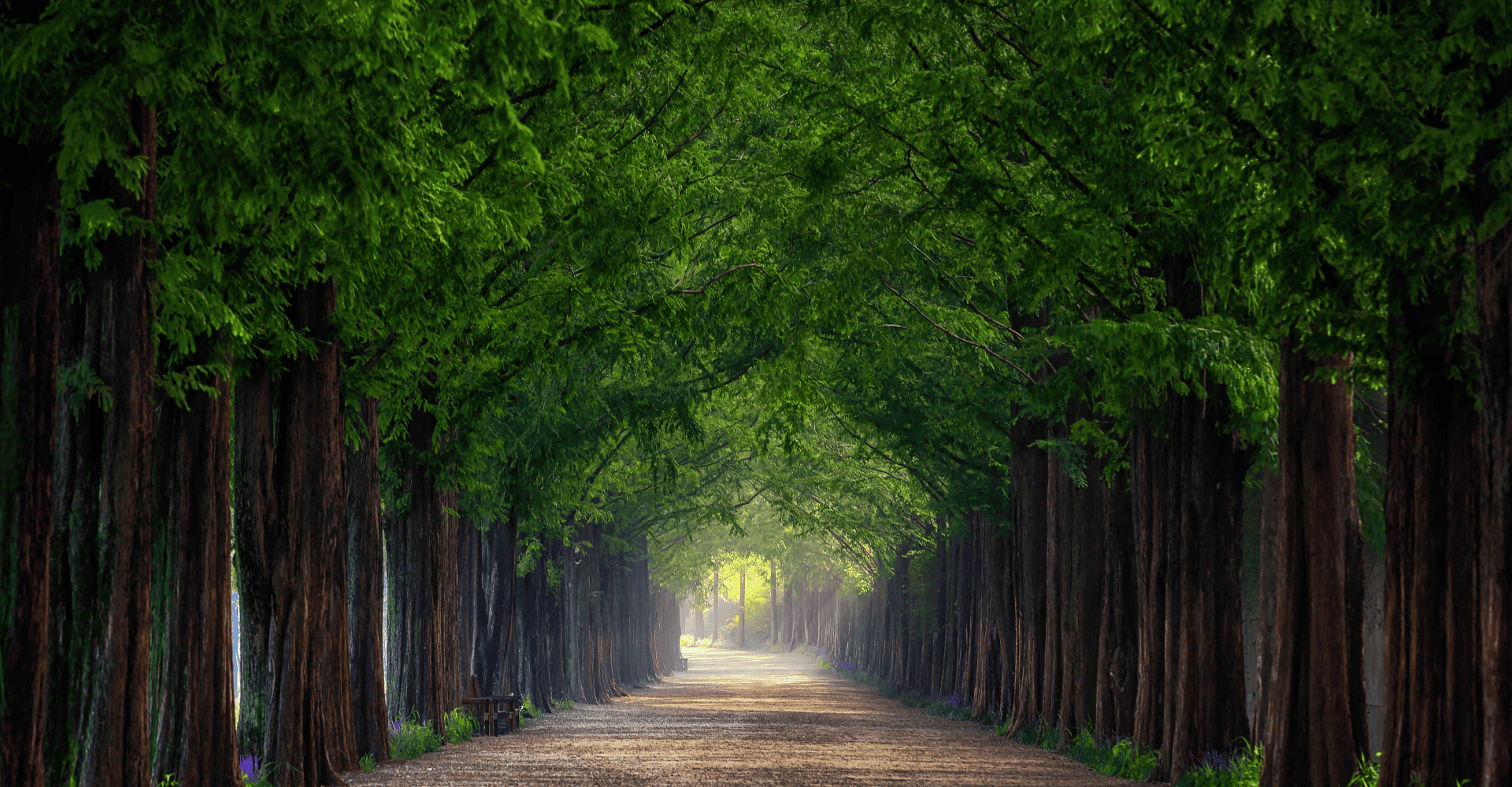하늘을 향해 곧게 뻗은 메타세쿼이아 나무들이 길게 이어져 장관을 이루는 자연 명소입니다.