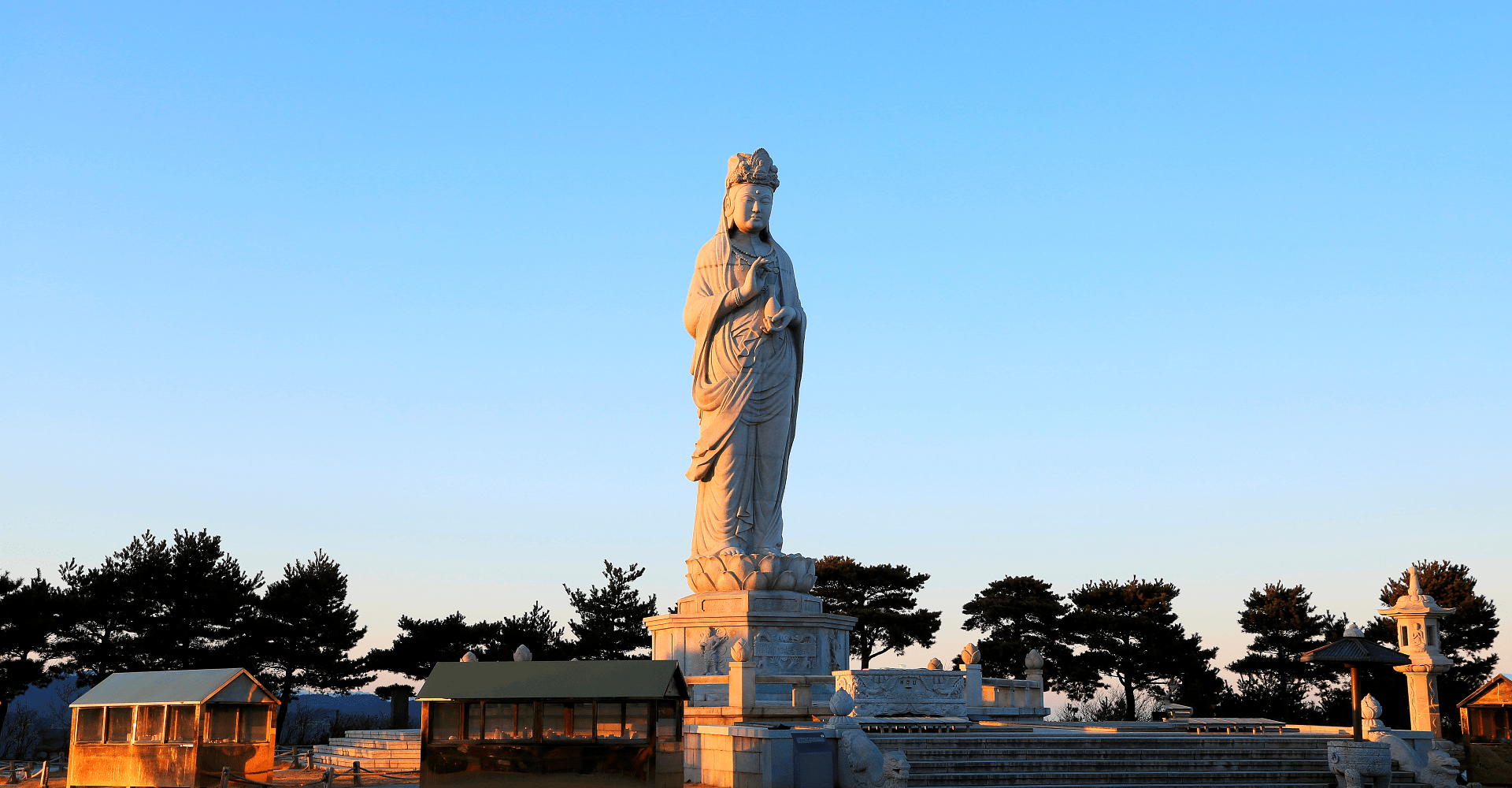 바다 위에 자리한 의상대와 홍련암, 해수관음상은 낙산사의 상징적인 명소입니다.